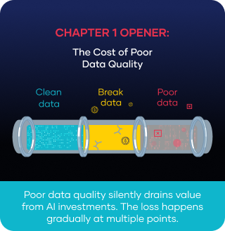The same IDC research found that data quality issues are cited as the primary barrier to deploying AI production. Data governance practices are essential for ensuring that all data is consistent, trustworthy, and free from misuse. Maintaining data quality is also essential for regulatory compliance and for reducing the risk of fines. Not model accuracy. Not compute resources. Not executive buy-in. Data.